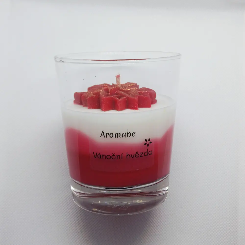 Ručně vyráběná sójová svíčka Vánoční hvězda ve skle, jemně provoněná skořicí, dokonale doladí vánoční atmosféru vašeho domova.